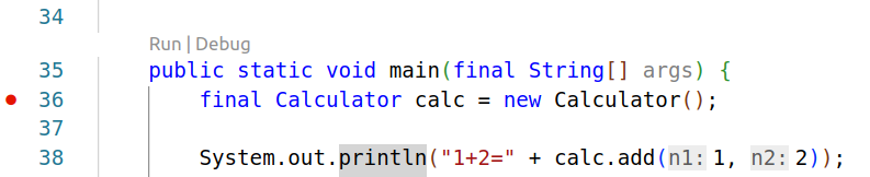 - Click a sinistra del numero di linea di una riga di codice di interesse