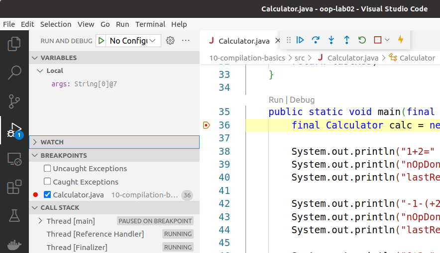 - Esecuzione di un’applicazione Java in “modalità debug”